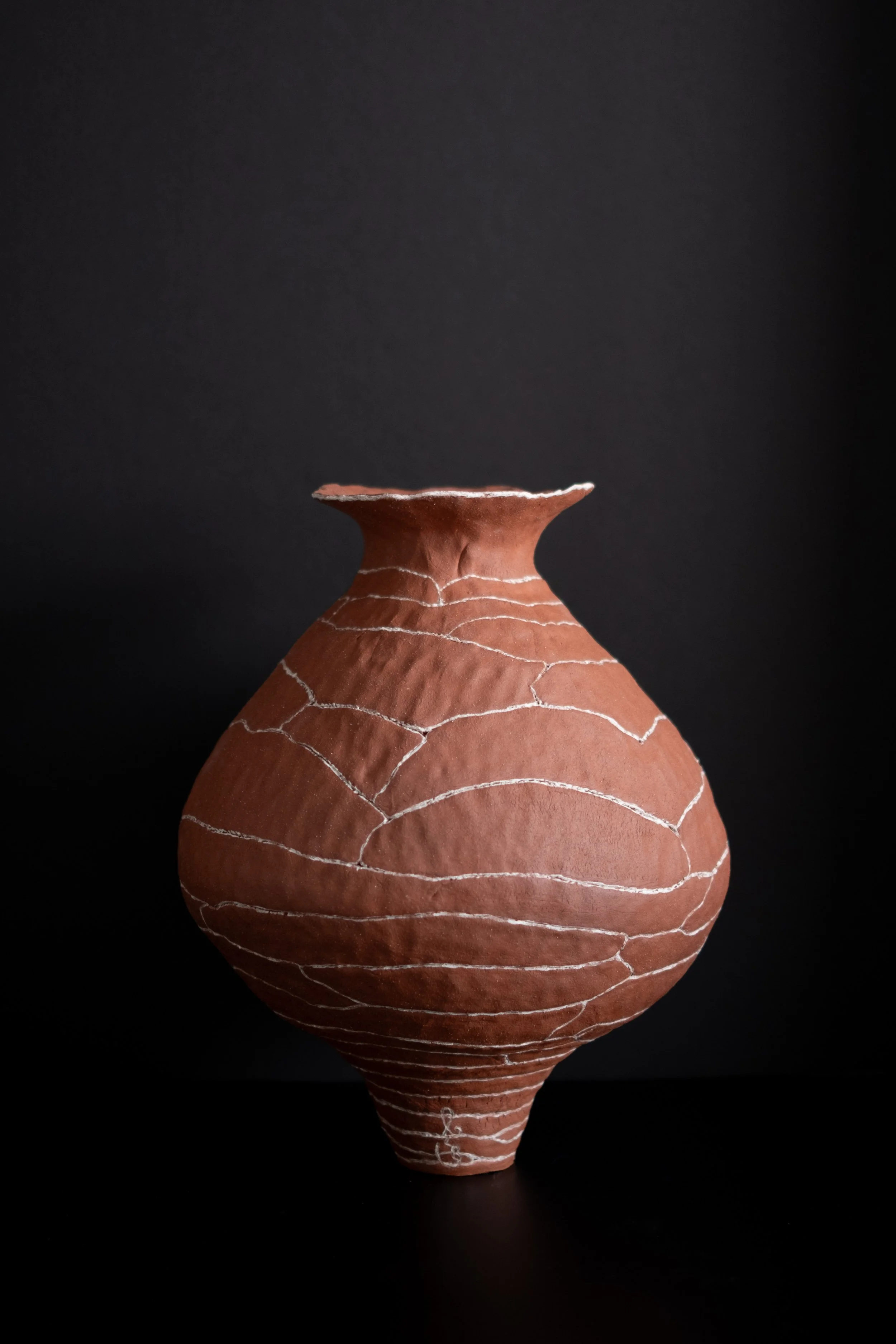 Kaneez Zehra Hassan is a Pakistani-American ceramic artist based in Utah, creating hand-built sculptural vessels that explore memory, identity, and repair. Working with coil, pinch, and slab techniques, Kaneez builds textured forms that evoke erosion and fragility. Many are bound with cotton thread, a gesture of quiet mending that honors both vulnerability and endurance. Inspired by archaeological fragments, devotional objects, and functional vessels, their work bridges past and present while reflecting on the diasporic experience. Guided by wabi-sabi philosophy, they embrace imperfection as integral to each piece, offering ceramics that are both contemplative and deeply personal.